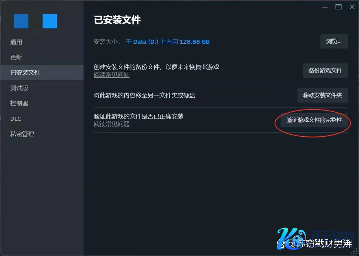 在腹地文献选项卡中,点击"考据游戏文献完好意思性"