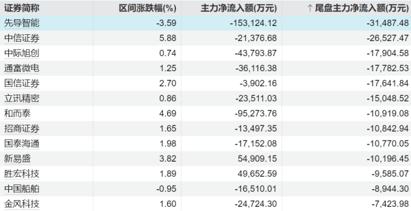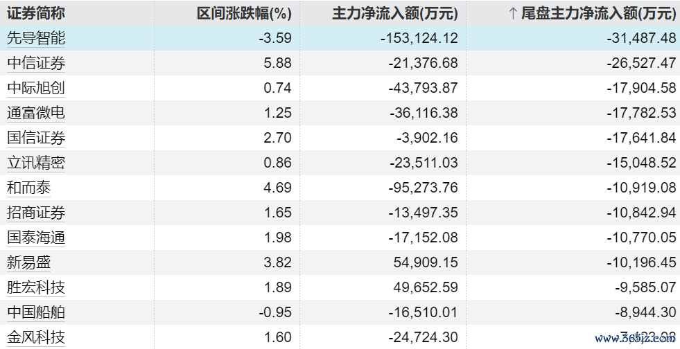 主力当天尾盘交易这些个股