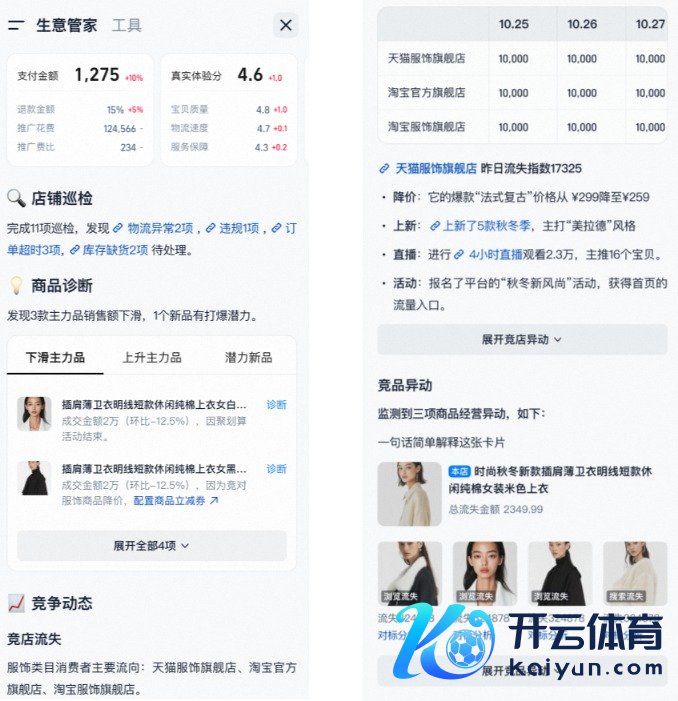 这么的变化并非个例,这种由AI驱动的着力立异正在宽阔商家中发生。一位饰品商家对此感叹颇深:在使用生意管家的AI数据分析Agent之前,他需要手动绽放十多个后台页面进行交叉分析,不仅耗时一上昼,还难以精确定位问题。而当今,AI巡店将着力晋升了20倍,商品巡检范围扩大了4倍,1分钟内就能掌捏全店筹画景色与异动,近80%的商品异动齐能被及时存眷。“之前一上昼的分析责任,当今半小时内就能完成,AI还能自动生成会诊敷陈,”他暗示,“这不仅是10倍的着力晋升,更是一次运营念念维的更动,匡助咱们达成了质效双升。”